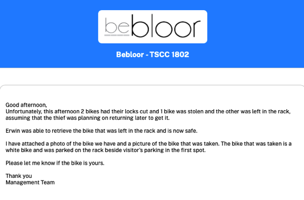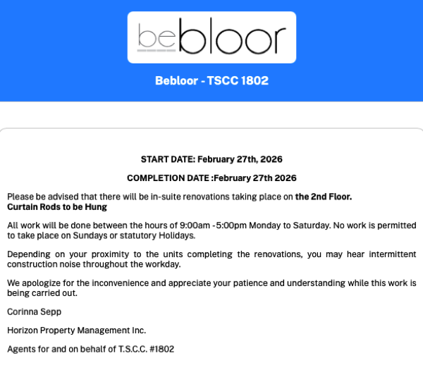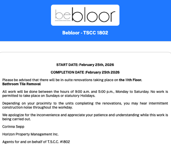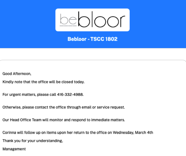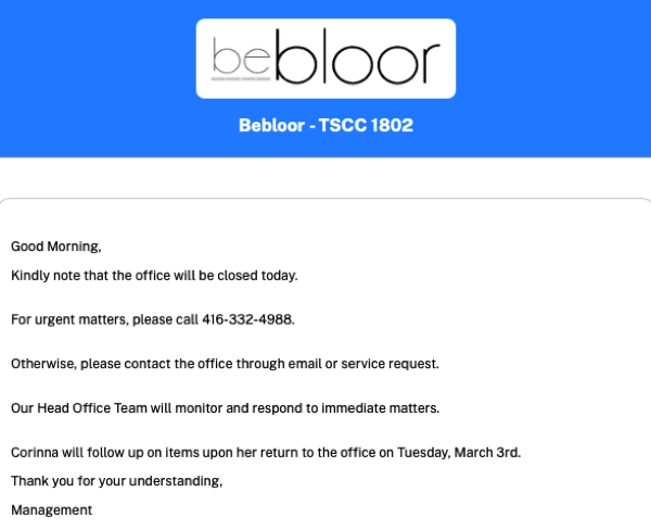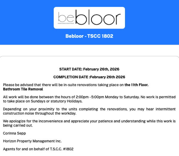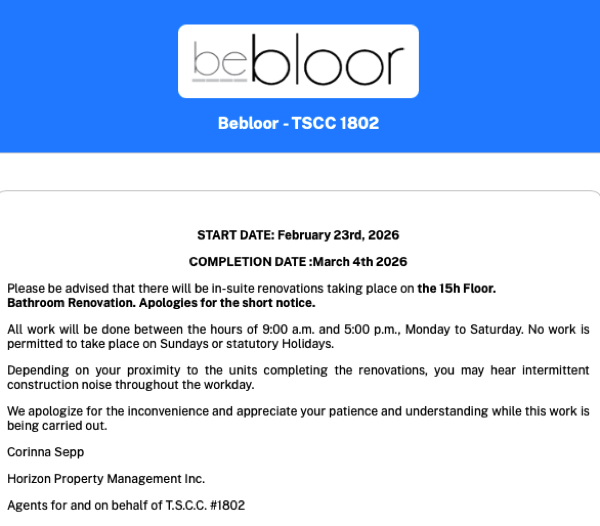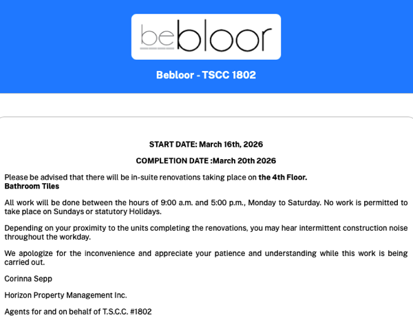 Bebloor - TSCC 1802 has set up a new secure portal to communicate electronically with you and other owners / residents. The new portal contains the secure area that will be the primary means for communicating important notices, such as events and announcements, well as allowing you to submit service requests and to book amenities. For owners, it also provides access to confidential condominium documents such as your annual budget, meeting notices and minutes. We are requesting that you all become familiar with the site, as we believe it will significantly enhance your condo experience.
